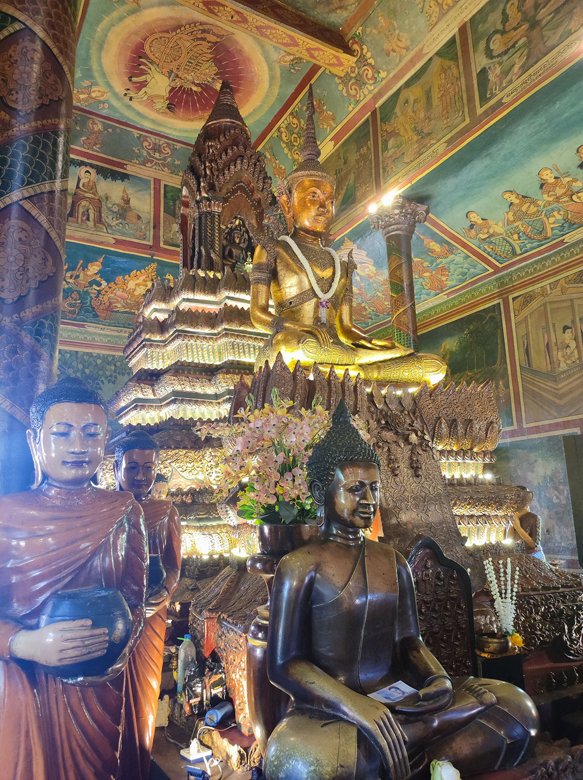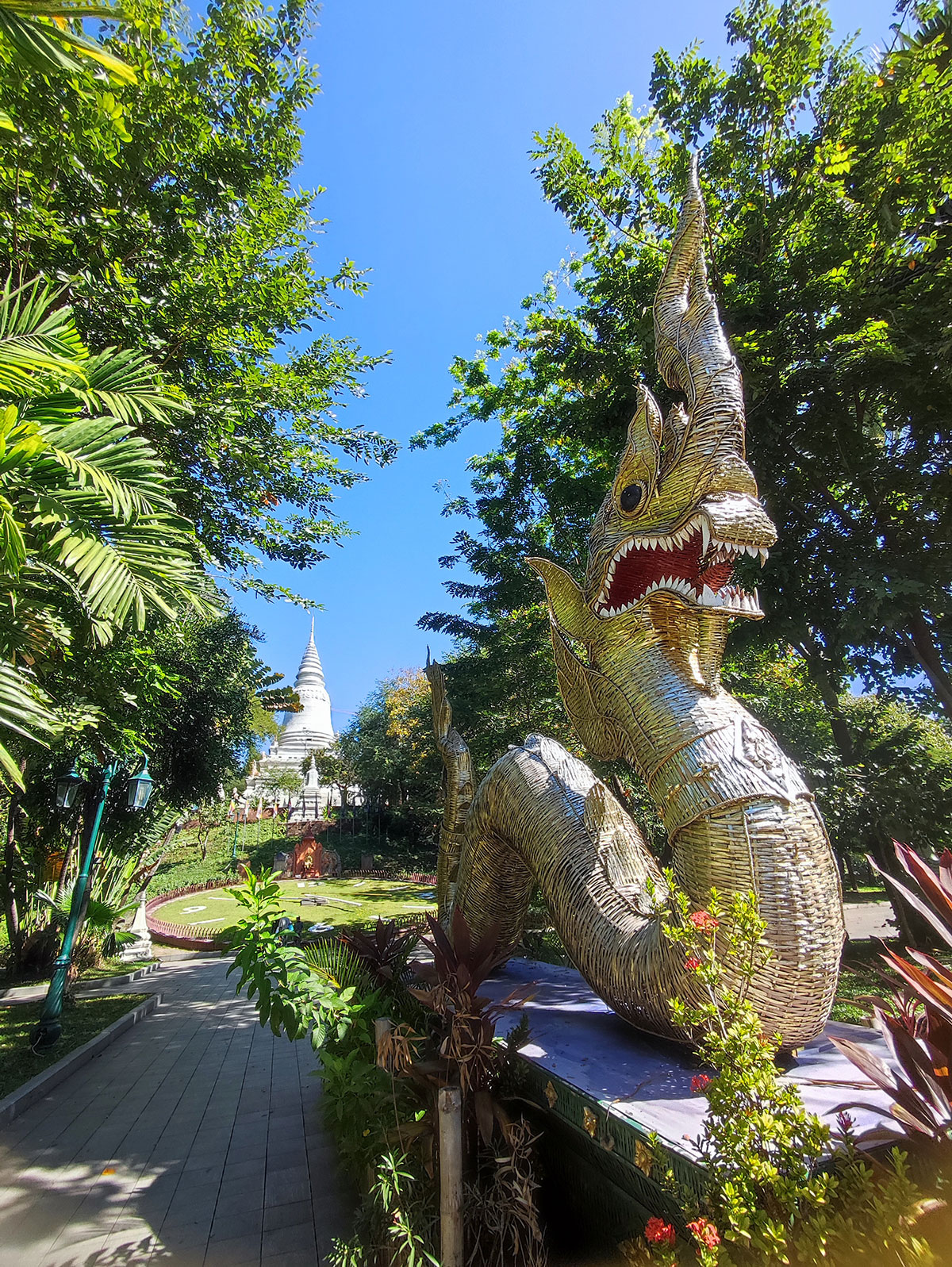 Sur la route du retour, nous sommes passées devant le Palais royal et la pagode argent. Il est déjà 14h30, il fait 34 degrés, l’air est lourd et nous succombons à l’appel de la piscine de l’hôtel. Nous ne verrons donc pas l’intérieur du palais cette fois ci.
