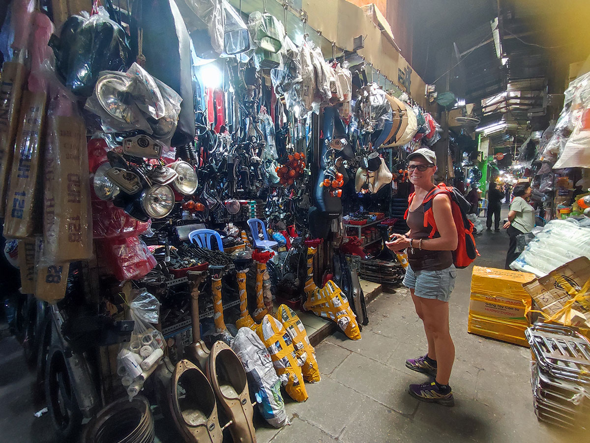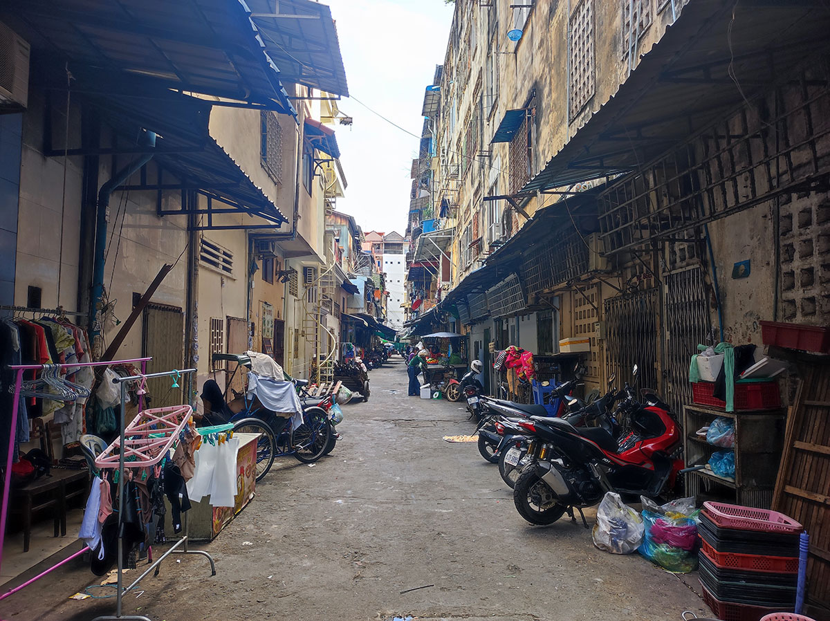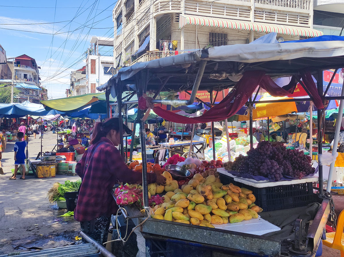 Ça grouille de partout. Tous nos sens sont stimulés. C’est olfactif (surtout autour du central market). C’est bruyant, ça crie, ça klaxonne, ça te coupe la route en scooter. Ça dort dans des hamacs, dans les Tuk Tuks, par terre ou sur une chaise. Un peu plus loin, une dame agite un sac plastique pour faire partir les mouches de la viande et du poisson.