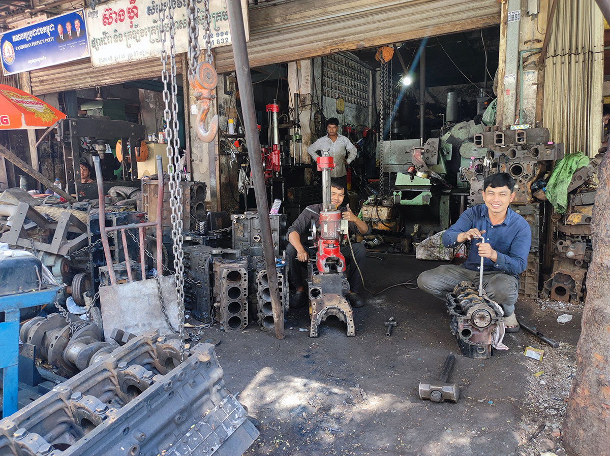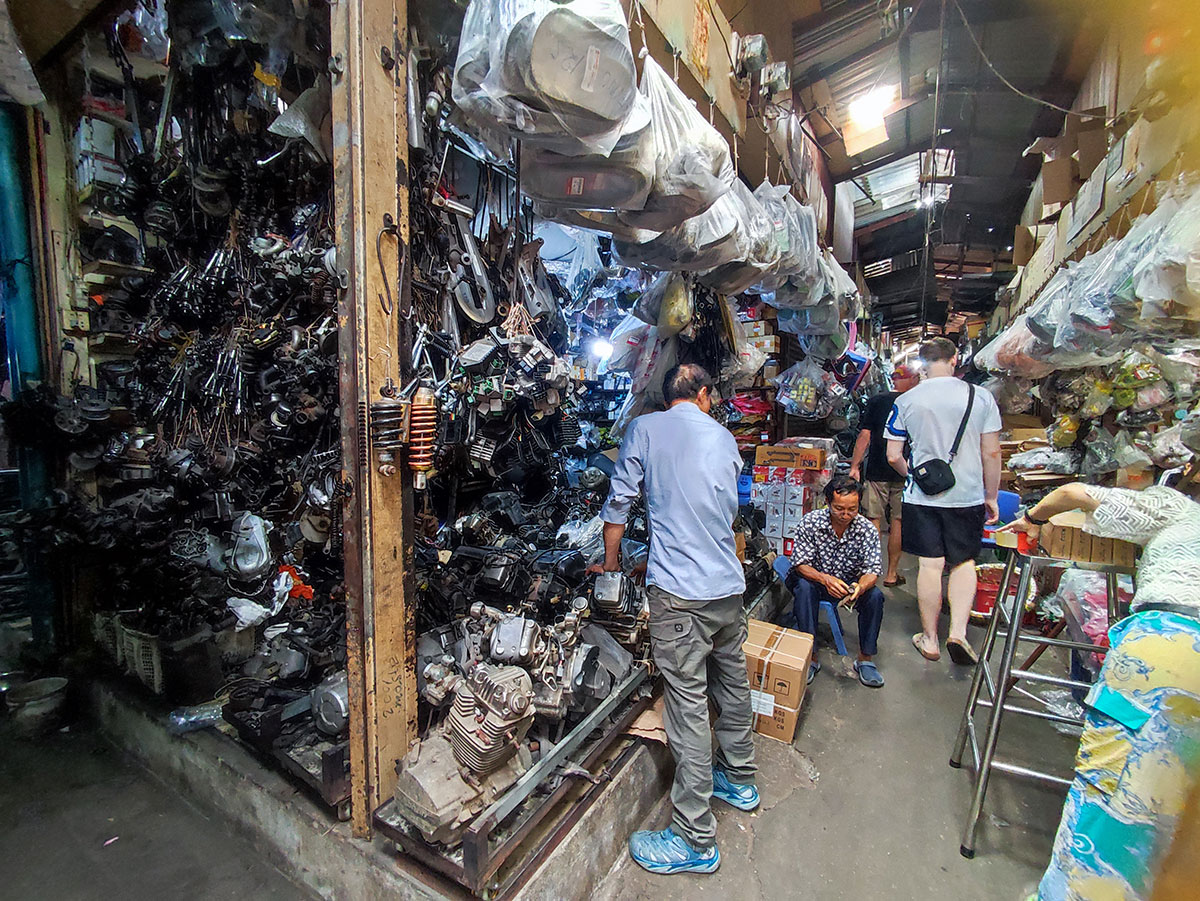 Juste à côté, on entend crier un malheureux poulet qui est sur le point de passer à la casserole. Dans la ruelle suivante, des enfants courent nu pieds dans la rue, leur maman vend des cannes à sucre juste à côté ou des noix de coco. Au carrefour suivant, c’est le coin des réparateurs de moteurs en tout genre. Tout le monde est installé devant les bâtiments dans la rue. Tu passes d’un réparateur de sièges de Tuk Tuks à un salon de massage, en passant par des vendeurs de poulet, de fruits ou de tee shirts. C’est un joyeux mélange au milieu des maisons aux façades parfois défraîchies pleine de charme et des grandes bâtisses coloniales.