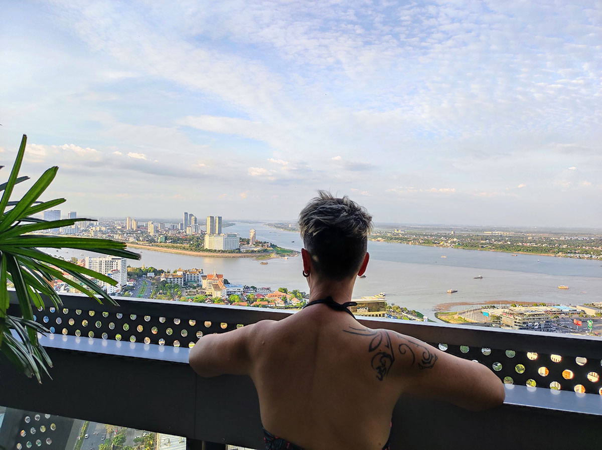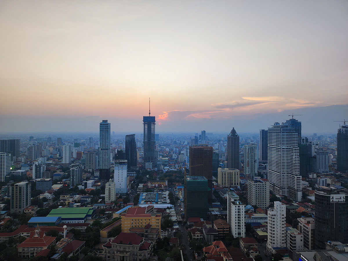 Nous avons dit au revoir à Phnom Penh du haut du Celeste Revolving Skybar pour un dernier 360 degrès au coucher du soleil.