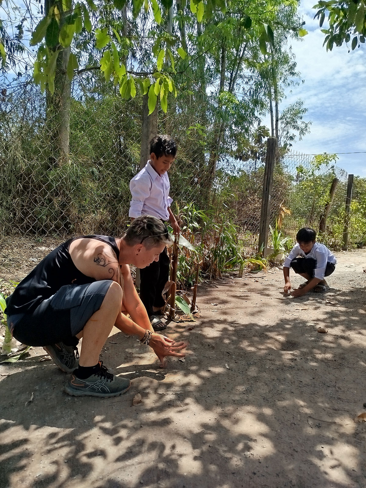 Comme vous pouvez vous en douter, nous avons marrainé une petit garçon de 11 ans qui s’appelle Pheara. Il est très timide et très gentil. La barrière de la langue fait qu’on a peu échangé mais on a quand même joué avec lui aux billes. Ça l’a bien fait rire de voir mes talents désastreux. L’important c’est que nous ayons pu respectivement mettre un nom sur un visage. Qu’il sache qu’il peut compter sur nous pour soutenir sa scolarité, ses repas et que des personnes bienveillantes pensent à lui à l’autre bout du monde. Les mails envoyés aux enfants par leurs parrain/marraine sont transmis aux enfants de façon à ce qu’il existe un réel lien.