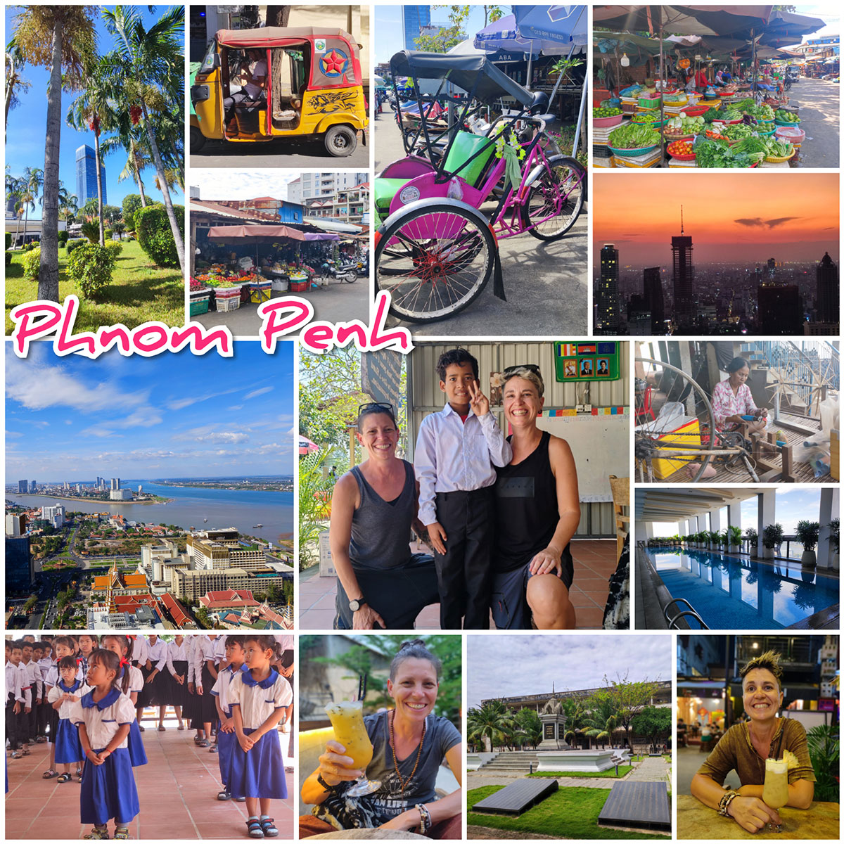 Nous avons contemplé ses vieilles maisons coloniales et nous sommes baladées le long du Tonle Sap River bordé de palmiers.