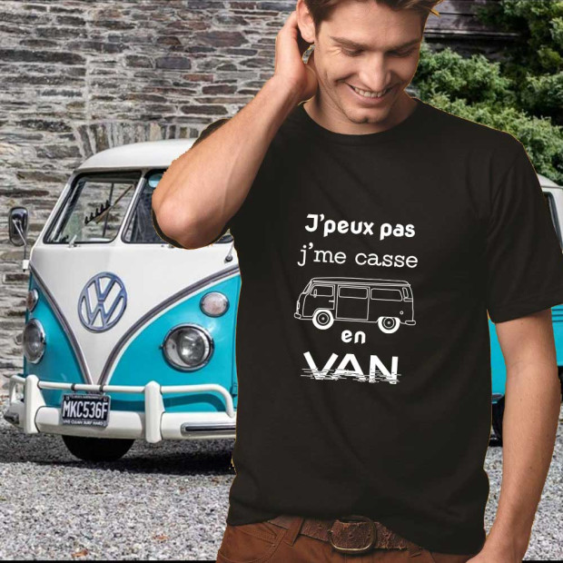 Chères aventurières et chers aventuriers passionnés de la vie en van, nous vous dévoilons notre dernière création : le tee-shirt qui incarne votre esprit de liberté et de découverte. Arborant fièrement le slogan « J’peux pas j’me casse en van », ce tee shirt est bien plus qu’un simple article de mode. Il est le symbole de votre désir inépuisable d’évasion et de nouvelles aventures. Imaginez-vous parcourant les routes infinies, le vent caressant vos cheveux, libre de toute contrainte, prêt à explorer des paysages inconnus. Ce tee-shirt est un cri du cœur pour ceux qui choisissent de s’échapper de la routine et de vivre pleinement chaque instant.