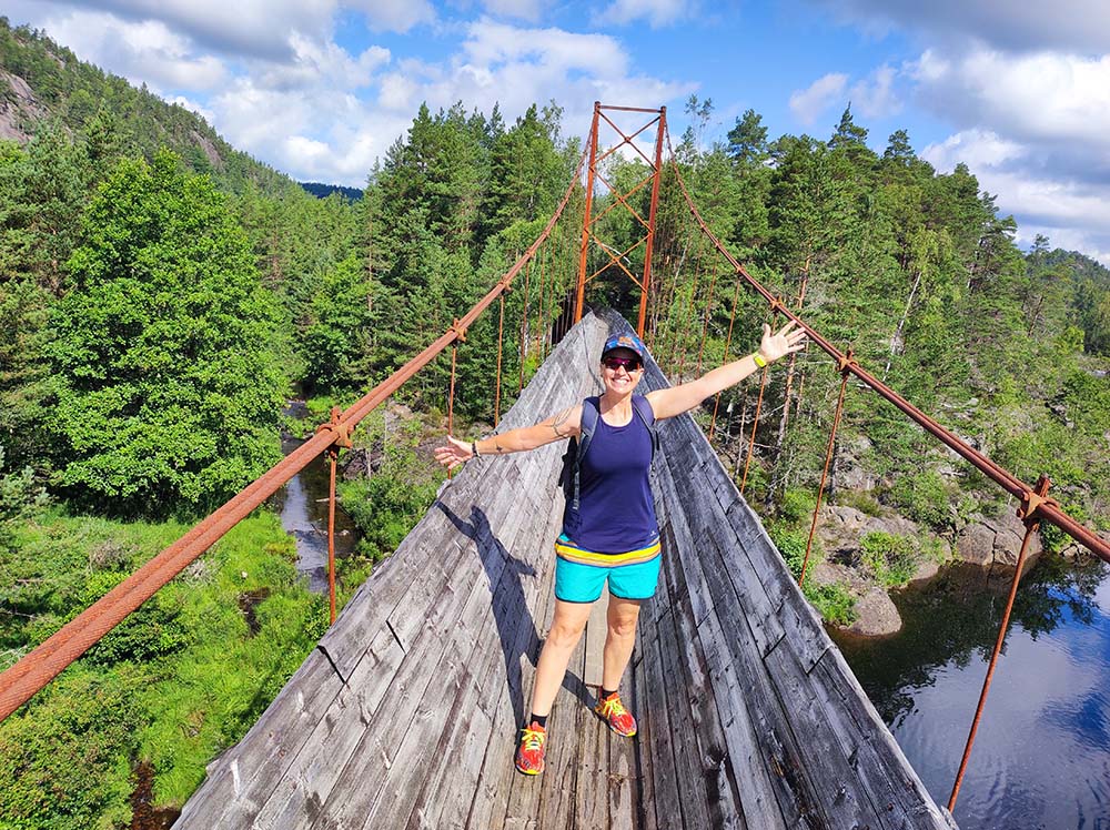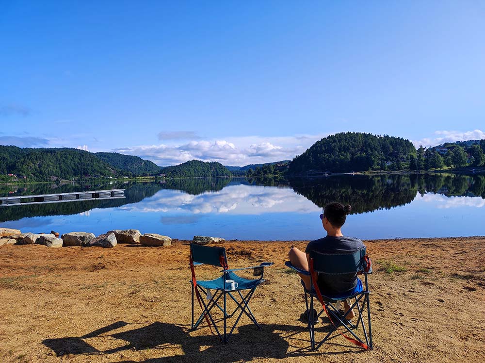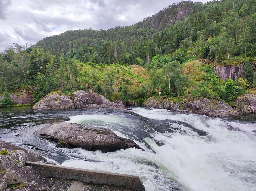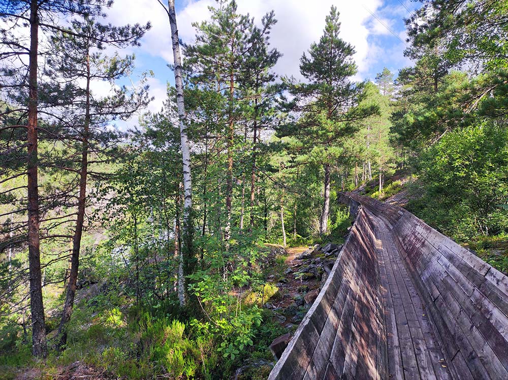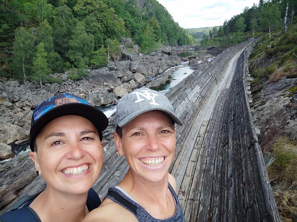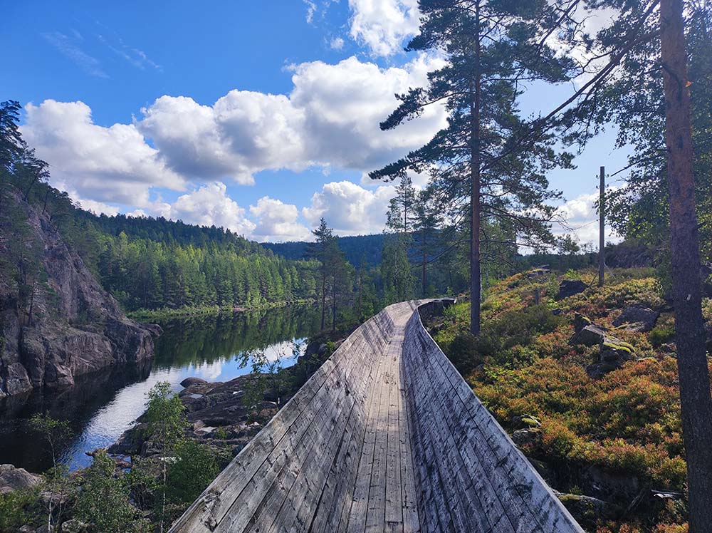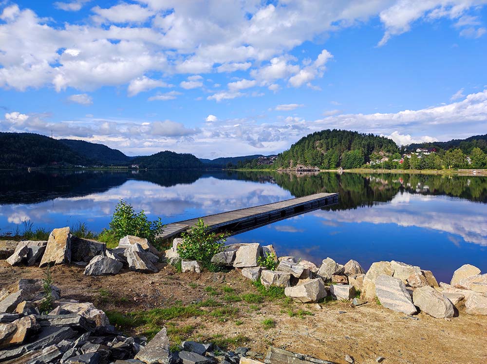 Notre premier spot en Norvège à Vennesla était super. Quelle arrivée!!! On s’est posées face au lac hier soir et on a observé les poissons sauter. C’était très paisible. On a bien dormi malgré la petite route passante juste au-dessus. Ce matin, on a bien sûr déjeuner les pieds dans le sable, le lac était d’huile, pas un grain de vent, magnifique. On s’est dirigées 5 km au dessus pour faire la randonnée Timber Slide à Tømmerrenna. C’était génial. Complètement immergées dans la nature, suspendues parfois au-dessus de l’eau sur un chemin en bois. Il a fallu 88000 mètres de planches en bois pour réaliser cette randonnée de 10 km. On passe à certains endroits sur des ponts suspendus, la ch’touille car ça bouge un peu. ♦ Adresse pour la rando : 31 Steinsfossvegen, Vennesla