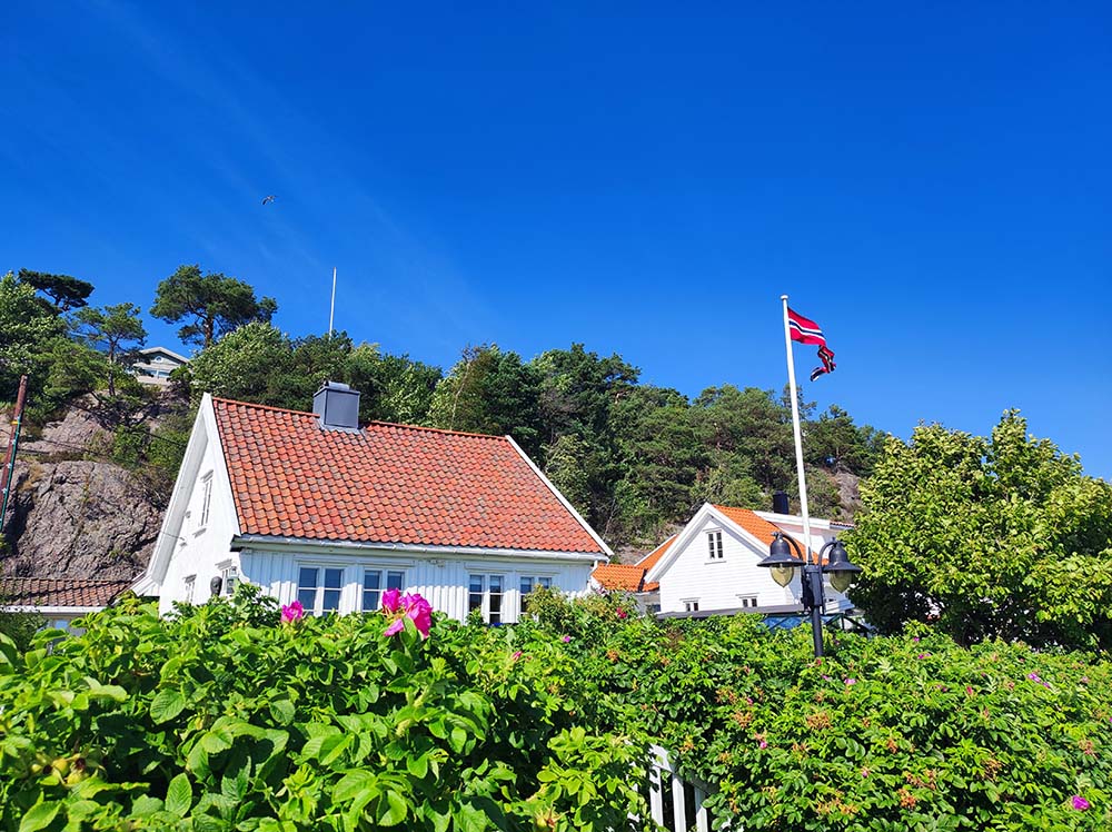 Le Norvégien laisse sa petite veilleuse allumée devant chez lui. Sa maison est en bois blanc ou rouge avec un petit balcon et le drapeau norvégien y flotte au vent 🇧🇻. Il aime aussi les originaux toits végétaux. Sa boîte aux lettres est accolée à celles de ses voisins sur un panneau en bois surmonté d’un mini toit.