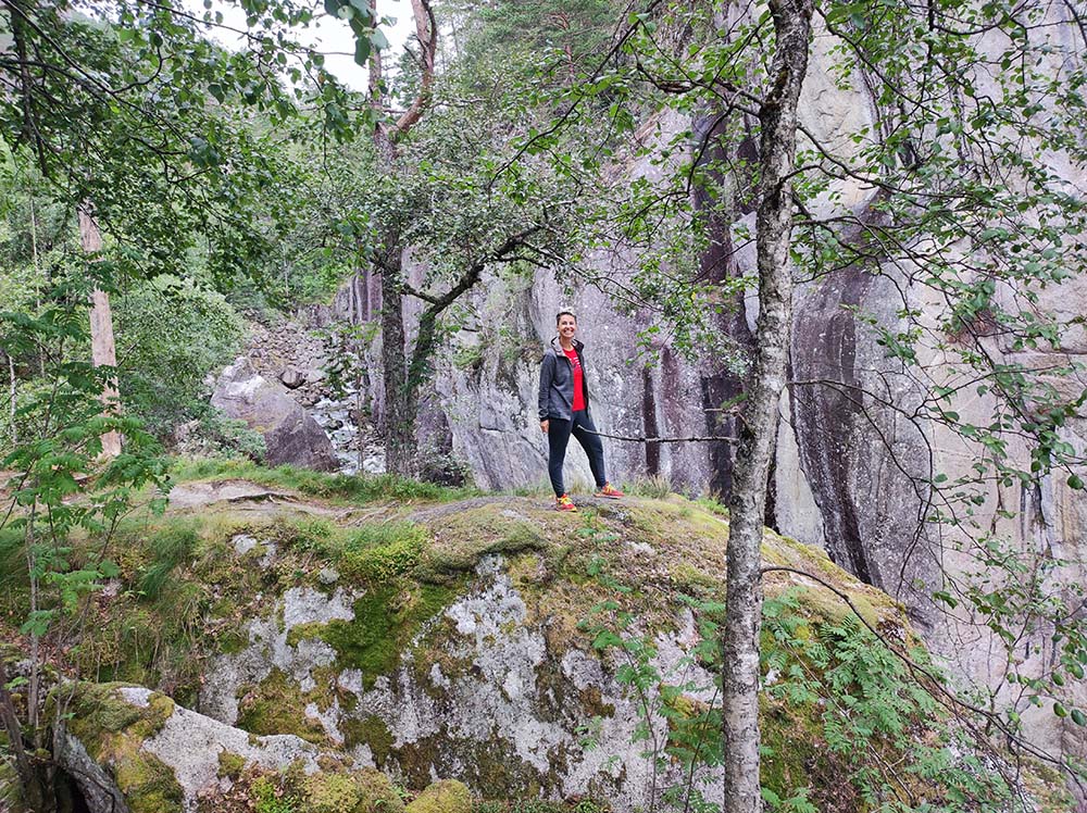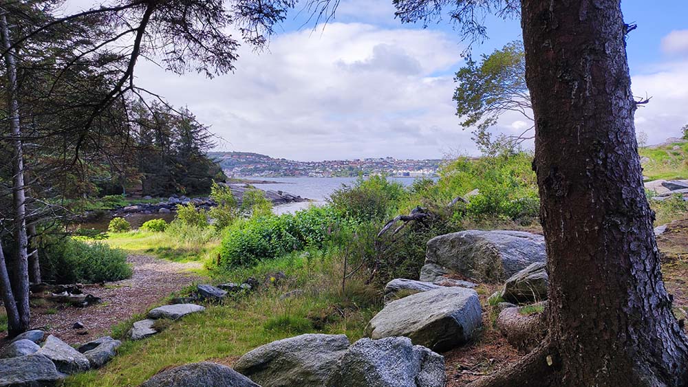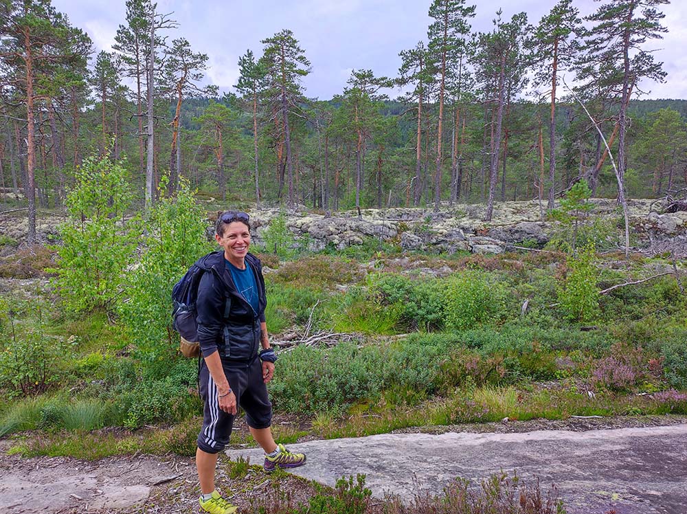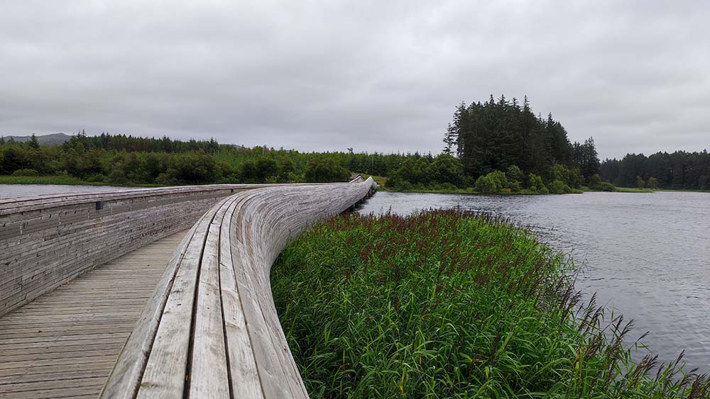 Nous nous sommes ensuite arrêtées sur la route pour rentrer dans la mini église de Varhaug et son cimetière exposé au vent du large. Direction ensuite pour Njåskojen où l’on a fait une rando de 5 km dans la forêt et traverser le Fjord sur le pont serpent.
