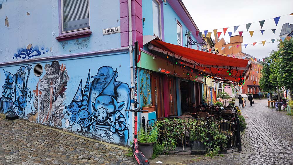Nous avons eu une fine pluie par moment mais globalement ça a été. Nous avons pu profiter du centre ville pas très grand mais très joli avec ces maisons en bois colorées. Nous avons tout particulièrement aimé la rue piétonne øvre holmegate très rainbow avec ses bars et magasins très accueillants. Le port est également un coin incontournable avec ses beaux restaurants face à l’eau. On a quand même réussi à rater la cathédrale mais bon tant pis. Nous sommes revenues à la Big Mamma en passant par un petit parc où ont élu domicile de nombreux cygnes et pigeons. Le soleil est revenu en fin de journée, on croise les doigts pour demain.