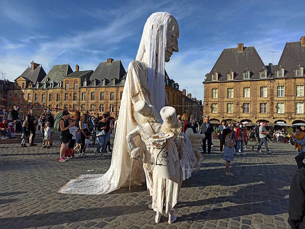 Pleins de bleds successifs paumés, en pleine nature avec les vaches. Personne à des km à la ronde, même les vaches semblaient blasées de nous voir passer. Un petit sandwich à Sedan et puis 25 km le long de la Meuse pour une arrivée en douceur à Charleville-Mézières. Et là, on apprend que c’est le Festival des marionnettes et on se dit ce soir c’est fiesta garbit ! Une bonne douche, des spectacles, une terrasse, une pizza…. On n’est pas rentrées !