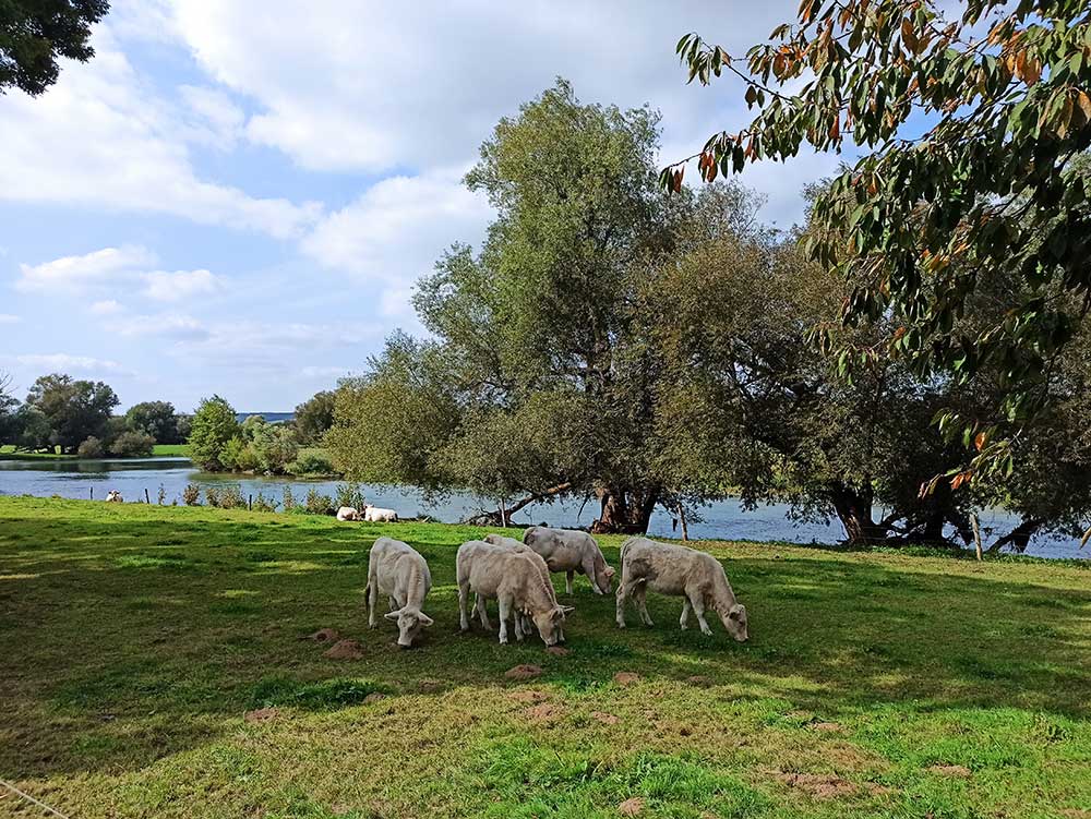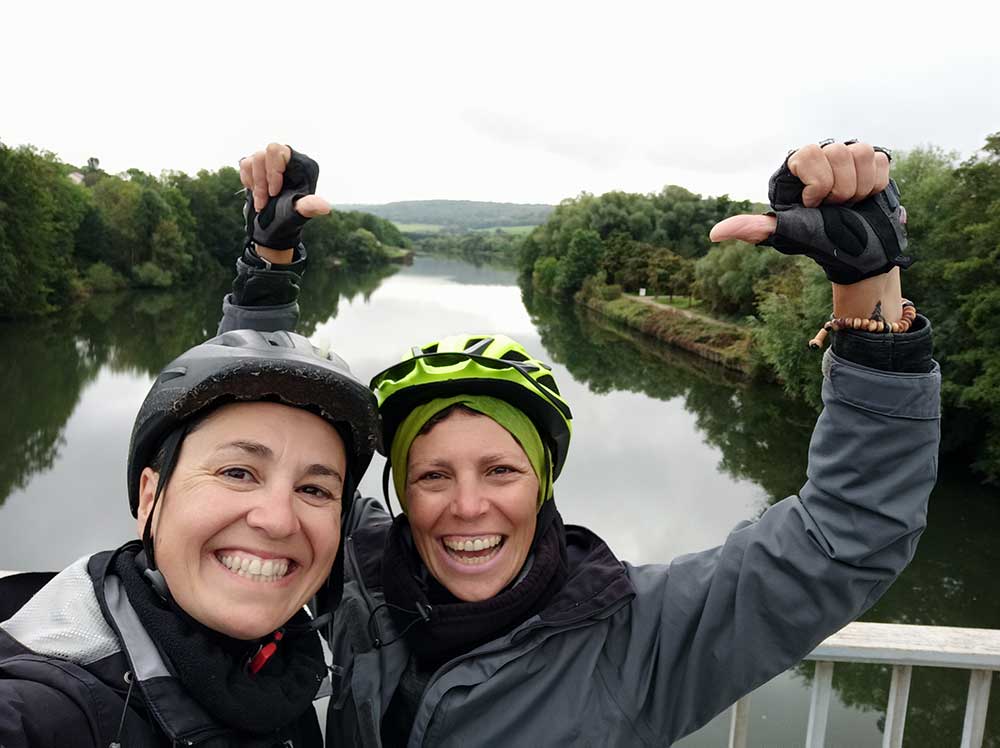 Nous avons suivi d’abord la boucle de la Moselle puis sommes arrivées dans la Meuse. Le soleil a pointé le bout de son nez progressivement dans la matinée jusqu’à nous offrir un super repas au soleil ce midi le long de la Meuse.