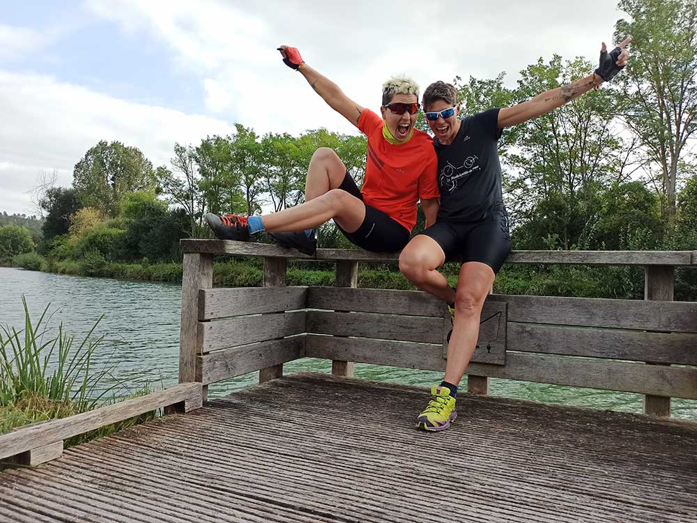 Ce sentiment de liberté et de bonheur absolu dans les descentes quand on est perchées droites debout sur notre vélo et qu’on voit la nature à perte de vue!!!! On kiffe. Ce sentiment bizarrement on l’a beaucoup moins dans les montées. Dans les montées, c’est plutôt un sentiment de satisfaction et d’effort accompli.