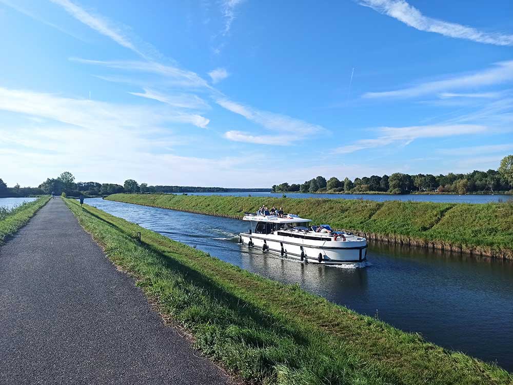 Nous n’avons toujours pas compris le plaisir qu’on les gens de naviguer en péniche ou bateau le long des canaux. C’est un concept qui nous dépasse un peu. Sur la Meuse ça va à peu près mais sur la Moselle, sur la Marne… ils enchaînent quasi tous les km le passage d’écluses c’est long et fastidieux.