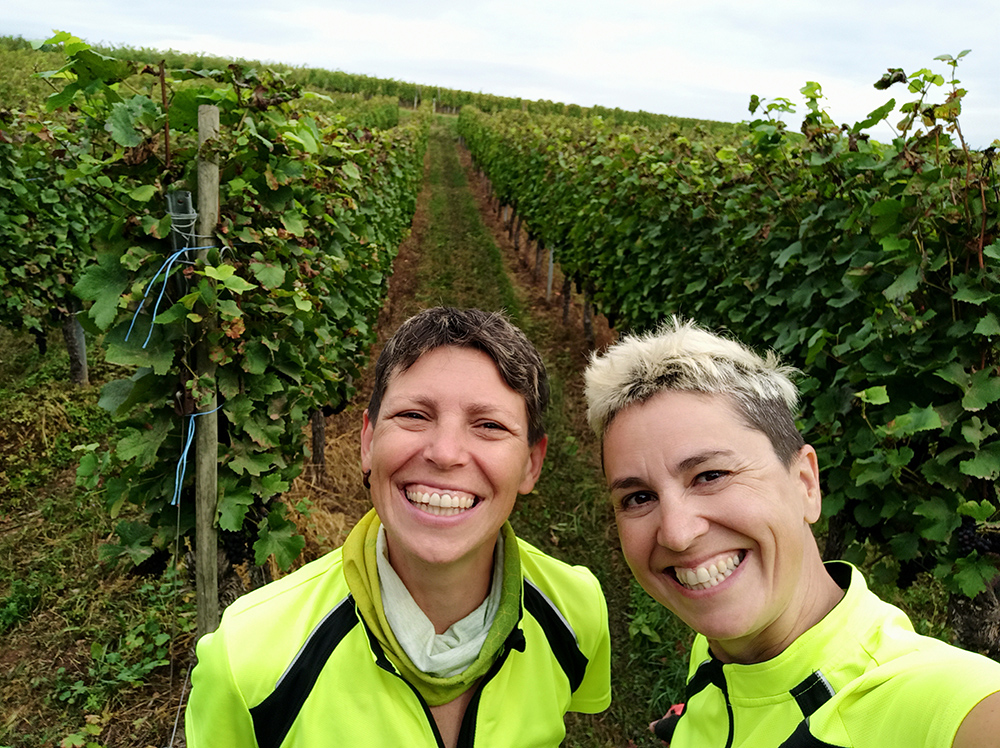 On a enfin retrouvé le calme pour un déjeuner posées au milieu des vignes. Nous n’avions pas assez de nos yeux pour tout regarder. Franchement, le kiff absolu. Personne, au milieu du raisin avec des vignes à perte de vue. Quel bonheur !!!! Le petit plus, c’est que nous avons pu fêter nos 1000 km au milieu de ces vignes dans un décor sublime. Nous avons ensuite continuer à suivre la route des vins d’Alsace.