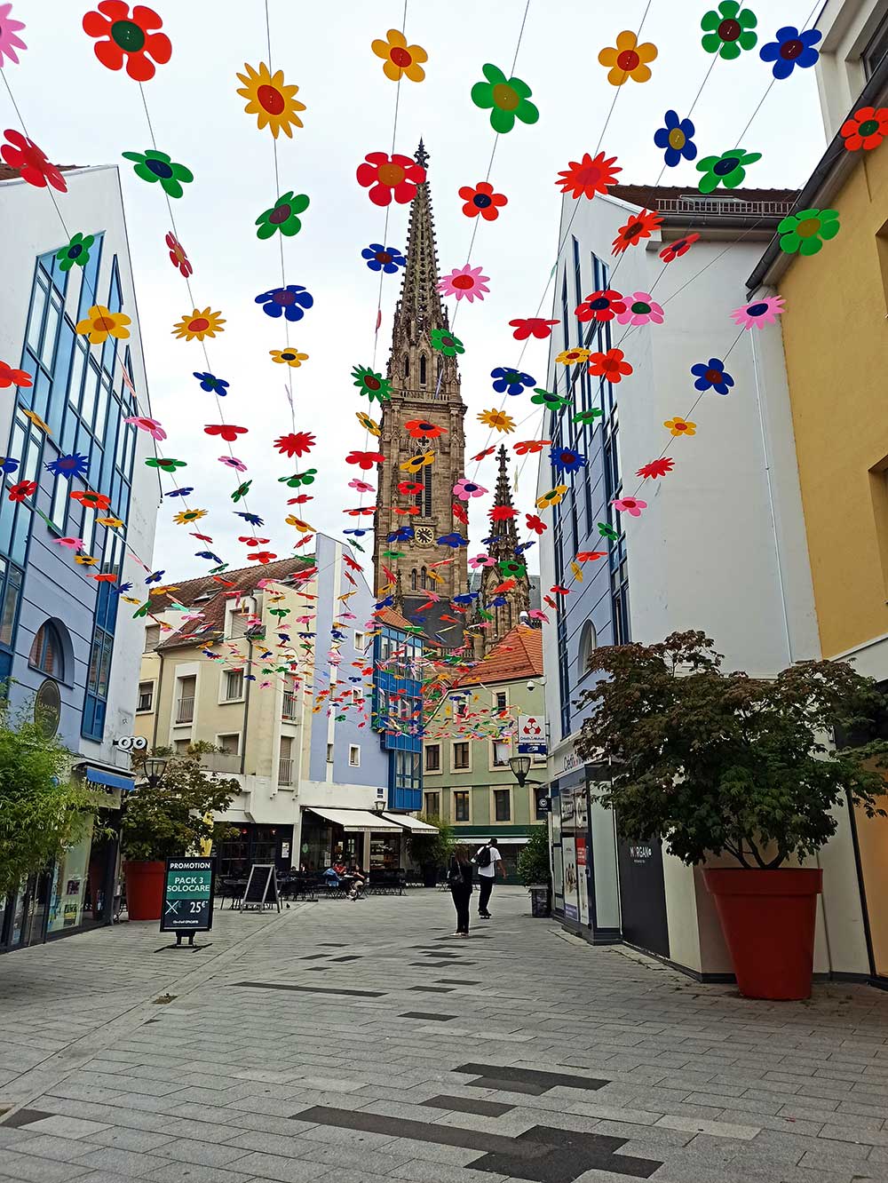 Ce soir, nous frôlons la frontière allemande alors qu’hier c’était celle de la Suisse. Notre arrivée en début d’après-midi, nous a permise de visiter le centre de Mulhouse. C’était très sympa. Puis de retour au camping, Wolfgang et Johannes étaient là et nous ont invité à prendre un verre avec eux. On a passé une très belle soirée. Ils viennent de se marier après 26 ans de vie commune et c’est la fin de leur voyage de noces (6 semaines à vélo en itinérant en France).